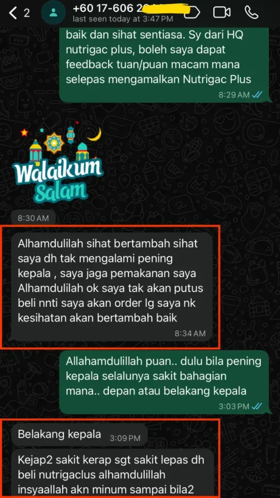 Dulu kejap-kejap sakit, kejap-kejap sakit kepala bahagian belakang, lepas beli nutrigac plus.. Allahamdulillah, insyaallah akan minum sampai bila2
